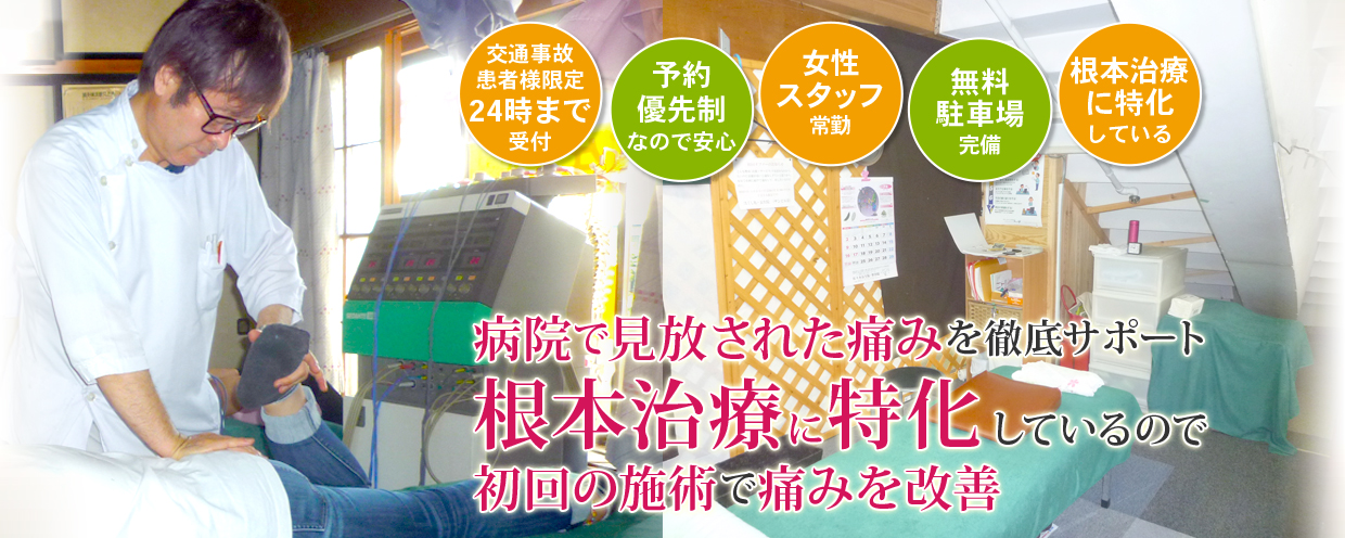 当院は痛みの早期改善を図るために、根本治療×再発予防を徹底して行っている整骨院です。