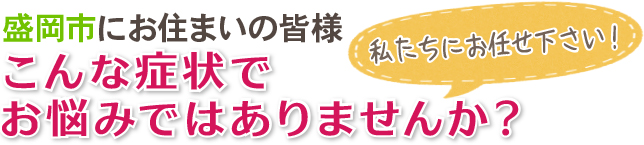 盛岡市や盛岡駅近辺にお住まいの方で上記のようなお悩みをお持ちの方は佐々木長生院・整骨院にご相談ください。
